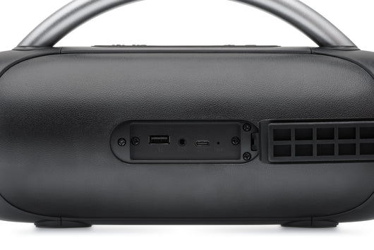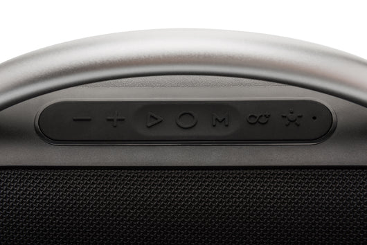Praktičnost je u přenosného reproduktoru naprostým základem, a právě proto je reproduktor vybaven robustním madlem pro snadné přenášení. A protože má navíc odolnost IPX5, můžete ho vzít opravdu kamkoliv, klidně i ven nebo k bazénu, stříkající voda ani malý déšť ho jen tak nezastaví!