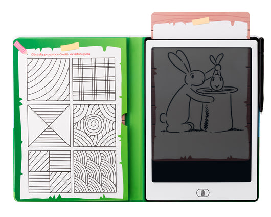 11" LCD displej nabízí dostatek místa pro první tahy, písmena i obrázky. Díky přiloženému stylusu se na něj píše velmi jednoduše – bez papíru, inkoustu a beze šmouh. A když se něco nepovede, stačí stisknout tlačítko a obrazovka je hned připravená na další pokusy.