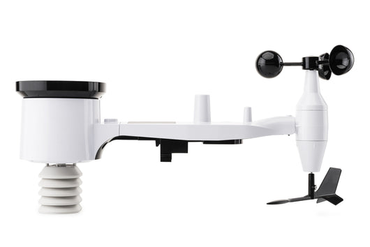 Na první pohled vás zaujme všesměrový senzor s korouhví, anemometrem a dešťovým sběračem. Meteostanice měří rychlost a směr větru, včetně nárazů, a detailně zaznamenává srážky – a to za hodinu, den, týden i celkově. Díky tomu získáte realistický obraz o aktuálních i dlouhodobějších podmínkách.