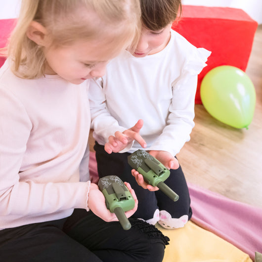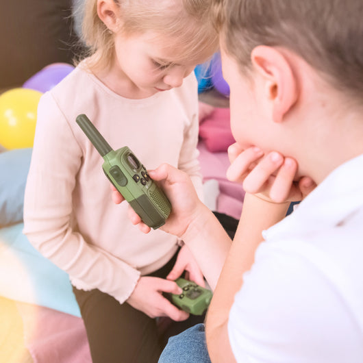 Ať už se děti vydají vstříc velkému dobrodružství, nebo budou chtít komunikovat se svými kamarády, vysílačky jim skvěle poslouží. V nezastavěné oblasti vysílačky zvládnou přenést komunikaci až na vzdálenost 4 km. Mezi budovami se pak maximální vzdálenost může lišit. Děti tak můžou spolu nebo s rodiči nerušeně komunikovat i na dálku.